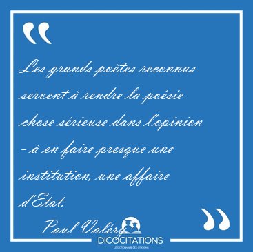 Les grands poètes reconnus servent à rendre la poésie chose sérieuse dans l'opinion - à en faire presque une institution, une affaire d'Etat.