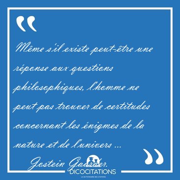 ![Même s'il existe peut-être une réponse aux questions [...] - Jostein Gaarder... Même s'il existe peut-être une réponse aux questions [...] - Jostein Gaarder...](/imagescitations/Meme_s_il_existe_peut-etre_une_reponse_aux_questions_-_Jostein_Gaarder-27201.jpg)