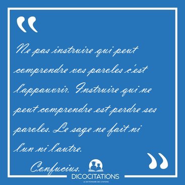 Ne pas instruire qui peut comprendre vos paroles c'est l'appauvrir. Instruire qui ne peut comprendre est perdre ses paroles. Le sage ne fait ni l'un ni l'autre.