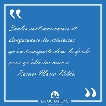 ![Seules sont mauvaises et dangereuses les tristesses qu'on [...] - Rainer Maria Rilke... Seules sont mauvaises et dangereuses les tristesses qu'on [...] - Rainer Maria Rilke...](/imagescitations/Seules_sont_mauvaises_et_dangereuses_les_tristesses_qu_on_-_Rainer_Maria_Rilke-27277.jpg)