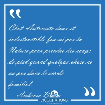 ![Chat: Automate doux et indestructible fourni par la Nature pour [...] - Ambrose Bierce... Chat: Automate doux et indestructible fourni par la Nature pour [...] - Ambrose Bierce...](/imagescitations/Chat_Automate_doux_et_indestructible_fourni_par_la_Nature_pour_-_Ambrose_Bierce-27516.jpg)