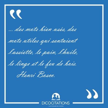 ... des mots bien usés, des mots utiles qui sentaient l'assiette, le pain, l'huile, le linge et le feu de bois.