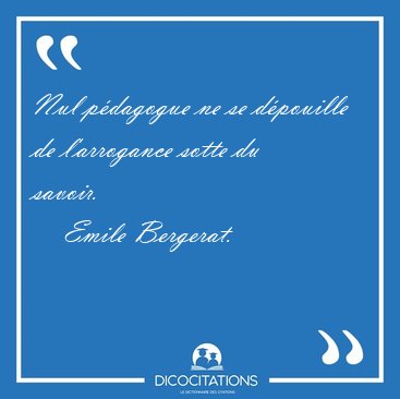 Nul pédagogue ne se dépouille de l'arrogance sotte du savoir.