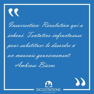 ![Insurrection: Révolution qui a échoué. Tentative infructueuse [...] - Ambrose Bierce... Insurrection: Révolution qui a échoué. Tentative infructueuse [...] - Ambrose Bierce...](/imagescitations/Insurrection_Revolution_qui_a_echoue_Tentative_infructueuse_-_Ambrose_Bierce-28910.jpg)