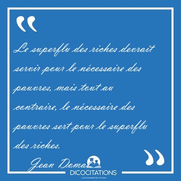 Le superflu des riches devrait servir pour le nécessaire des pauvres, mais tout au contraire, le nécessaire des pauvres sert pour le superflu des riches.