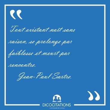 ![Tout existant naît sans raison, se prolonge par faiblesse et [...] - Jean-Paul Sartre... Tout existant naît sans raison, se prolonge par faiblesse et [...] - Jean-Paul Sartre...](/imagescitations/Tout_existant_nait_sans_raison_se_prolonge_par_faiblesse_et_-_Jean-Paul_Sartre-29466.jpg)