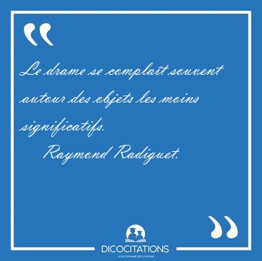 ![Le drame se complaît souvent autour des objets les moins [...] - Raymond Radiguet... Le drame se complaît souvent autour des objets les moins [...] - Raymond Radiguet...](/imagescitations/Le_drame_se_complait_souvent_autour_des_objets_les_moins_-_Raymond_Radiguet-29756.jpg)
