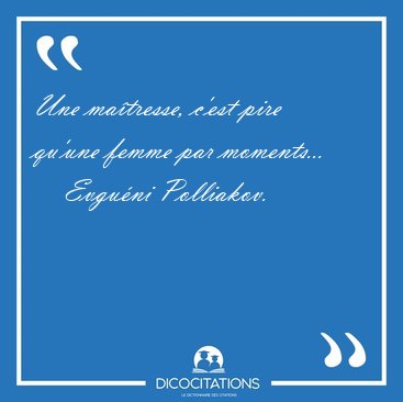 ![Une maîtresse, c'est pire qu'une femme par [...] - Evguéni Polliakov... Une maîtresse, c'est pire qu'une femme par [...] - Evguéni Polliakov...](/imagescitations/Une_maitresse_c_est_pire_qu_une_femme_par_-_Evgueni_Polliakov-30088.jpg)