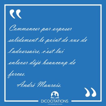 Commencer par exposer solidement le point de vue de l'adversaire, c'est lui enlever déjà beaucoup de forces.