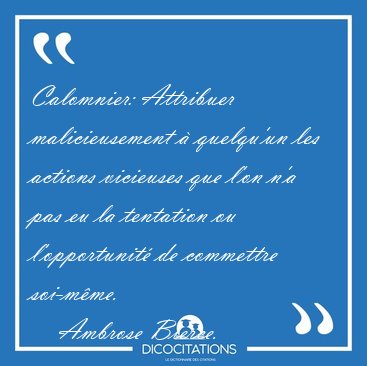 Calomnier: Attribuer malicieusement à quelqu'un les actions vicieuses que l'on n'a pas eu la tentation ou l'opportunité de commettre soi-même.