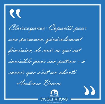 ![Clairvoyance: Capacité pour une personne, généralement féminine, [...] - Ambrose Bierce... Clairvoyance: Capacité pour une personne, généralement féminine, [...] - Ambrose Bierce...](/imagescitations/Clairvoyance_Capacite_pour_une_personne_generalement_feminine_-_Ambrose_Bierce-30381.jpg)