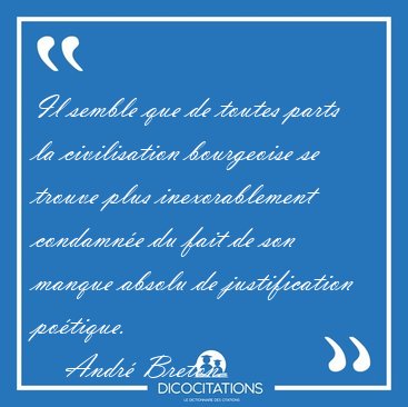 Il semble que de toutes parts la civilisation bourgeoise se trouve plus inexorablement condamnée du fait de son manque absolu de justification poétique.