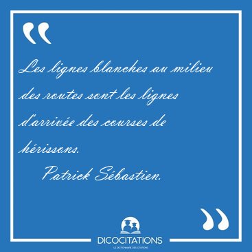 ![Les lignes blanches au milieu des routes sont les lignes [...] - Patrick Sébastien... Les lignes blanches au milieu des routes sont les lignes [...] - Patrick Sébastien...](/imagescitations/Les_lignes_blanches_au_milieu_des_routes_sont_les_lignes_-_Patrick_Sebastien-31178.jpg)