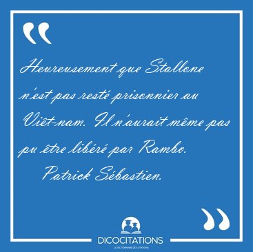 ![Heureusement que Stallone n'est pas resté prisonnier au [...] - Patrick Sébastien... Heureusement que Stallone n'est pas resté prisonnier au [...] - Patrick Sébastien...](/imagescitations/Heureusement_que_Stallone_n_est_pas_reste_prisonnier_au_-_Patrick_Sebastien-31227.jpg)