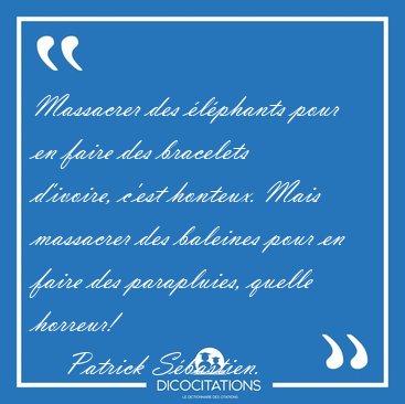 Massacrer des éléphants pour en faire des bracelets d'ivoire, c'est honteux. Mais massacrer des baleines pour en faire des parapluies, quelle horreur!