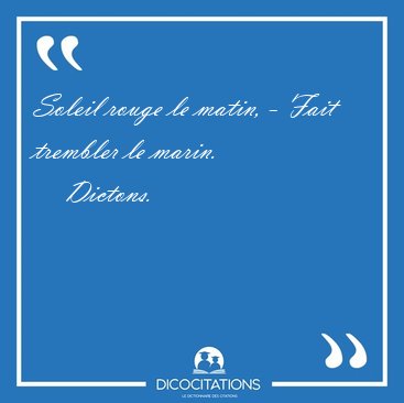 ![Soleil rouge le matin, - Fait trembler le [...] - Dictons... Soleil rouge le matin, - Fait trembler le [...] - Dictons...](/imagescitations/Soleil_rouge_le_matin_-_Fait_trembler_le_-_Dictons-31602.jpg)