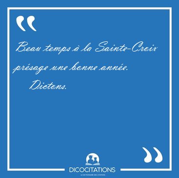 ![Beau temps à la Sainte-Croix présage une bonne [...] - Dictons... Beau temps à la Sainte-Croix présage une bonne [...] - Dictons...](/imagescitations/Beau_temps_a_la_Sainte-Croix_presage_une_bonne_-_Dictons-31636.jpg)