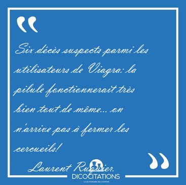 ![Six décès suspects parmi les utilisateurs de Viagra: la pilule [...] - Laurent Ruquier... Six décès suspects parmi les utilisateurs de Viagra: la pilule [...] - Laurent Ruquier...](/imagescitations/Six_deces_suspects_parmi_les_utilisateurs_de_Viagra_la_pilule_-_Laurent_Ruquier-31710.jpg)