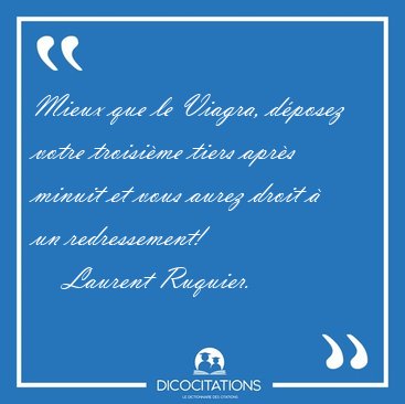![Mieux que le Viagra, déposez votre troisième tiers après minuit [...] - Laurent Ruquier... Mieux que le Viagra, déposez votre troisième tiers après minuit [...] - Laurent Ruquier...](/imagescitations/Mieux_que_le_Viagra_deposez_votre_troisieme_tiers_apres_minuit_-_Laurent_Ruquier-31722.jpg)