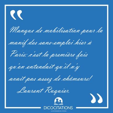 ![Manque de mobilisation pour la manif des sans-emploi hier à [...] - Laurent Ruquier... Manque de mobilisation pour la manif des sans-emploi hier à [...] - Laurent Ruquier...](/imagescitations/Manque_de_mobilisation_pour_la_manif_des_sans-emploi_hier_a_-_Laurent_Ruquier-31769.jpg)
