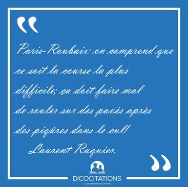 Recherche de citations : Paris-Roubaix: comprend / comprend course / Paris-Roubaix: course