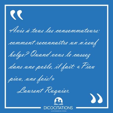 ![Avis à tous les consommateurs: comment reconnaître un n'oeuf [...] - Laurent Ruquier... Avis à tous les consommateurs: comment reconnaître un n'oeuf [...] - Laurent Ruquier...](/imagescitations/Avis_a_tous_les_consommateurs_comment_reconnaitre_un_n_oeuf_-_Laurent_Ruquier-32005.jpg)