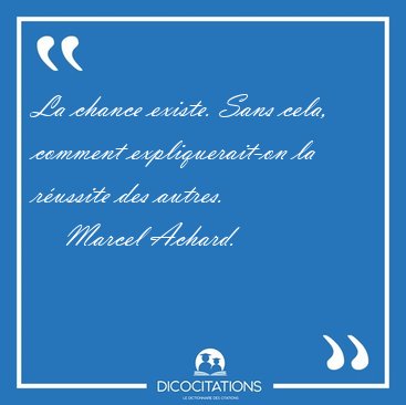 ![La chance existe. Sans cela, comment expliquerait-on la réussite [...] - Marcel Achard... La chance existe. Sans cela, comment expliquerait-on la réussite [...] - Marcel Achard...](/imagescitations/La_chance_existe_Sans_cela_comment_expliquerait-on_la_reussite_-_Marcel_Achard-32164.jpg)