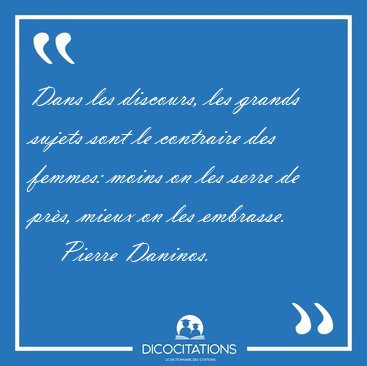 Dans les discours, les grands sujets sont le contraire des femmes: moins on les serre de près, mieux on les embrasse.