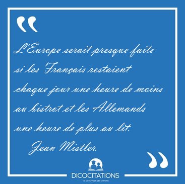 ![L'Europe serait presque faite si les Français restaient chaque [...] - Jean Mistler... L'Europe serait presque faite si les Français restaient chaque [...] - Jean Mistler...](/imagescitations/L_Europe_serait_presque_faite_si_les_Francais_restaient_chaque_-_Jean_Mistler-32773.jpg)