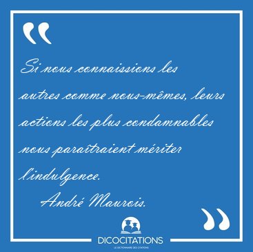 Si nous connaissions les autres comme nous-mêmes, leurs actions les plus condamnables nous paraîtraient mériter l'indulgence.