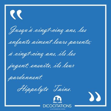 ![Jusqu'à vingt-cinq ans, les enfants aiment leurs parents; à [...] - Hippolyte Taine... Jusqu'à vingt-cinq ans, les enfants aiment leurs parents; à [...] - Hippolyte Taine...](/imagescitations/Jusqu_a_vingt-cinq_ans_les_enfants_aiment_leurs_parents_a_-_Hippolyte_Taine-33146.jpg)
