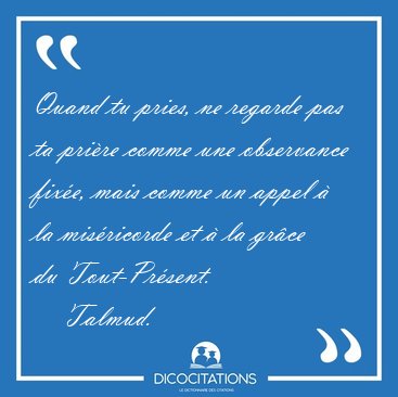 ![Quand tu pries, ne regarde pas ta prière comme une observance [...] - Talmud... Quand tu pries, ne regarde pas ta prière comme une observance [...] - Talmud...](/imagescitations/Quand_tu_pries_ne_regarde_pas_ta_priere_comme_une_observance_-_Talmud-33869.jpg)