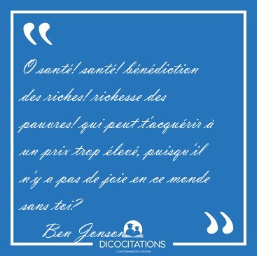 ![O santé! santé! bénédiction des riches! richesse des pauvres! [...] - Ben Jonson... O santé! santé! bénédiction des riches! richesse des pauvres! [...] - Ben Jonson...](/imagescitations/O_sante_sante_benediction_des_riches_richesse_des_pauvres_-_Ben_Jonson-34009.jpg)