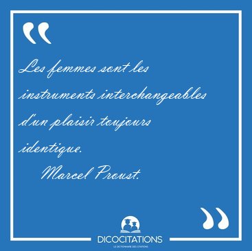 ![Les femmes sont les instruments interchangeables d'un plaisir [...] - Marcel Proust... Les femmes sont les instruments interchangeables d'un plaisir [...] - Marcel Proust...](/imagescitations/Les_femmes_sont_les_instruments_interchangeables_d_un_plaisir_-_Marcel_Proust-34640.jpg)