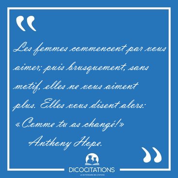 Les femmes commencent par vous aimer; puis brusquement, sans motif, elles ne vous aiment plus. Elles vous disent alors: «Comme tu as changé!»