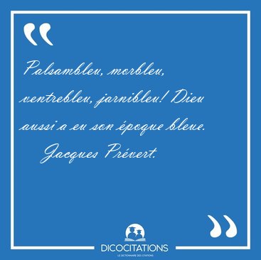 ![Palsambleu, morbleu, ventrebleu, jarnibleu! Dieu aussi a eu son [...] - Jacques Prévert... Palsambleu, morbleu, ventrebleu, jarnibleu! Dieu aussi a eu son [...] - Jacques Prévert...](/imagescitations/Palsambleu_morbleu_ventrebleu_jarnibleu_Dieu_aussi_a_eu_son_-_Jacques_Prevert-35730.jpg)