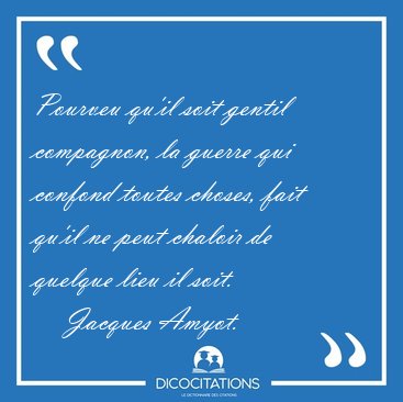 ![Pourveu qu'il soit gentil compagnon, la guerre qui confond [...] - Jacques Amyot... Pourveu qu'il soit gentil compagnon, la guerre qui confond [...] - Jacques Amyot...](/imagescitations/Pourveu_qu_il_soit_gentil_compagnon_la_guerre_qui_confond_-_Jacques_Amyot-37749.jpg)