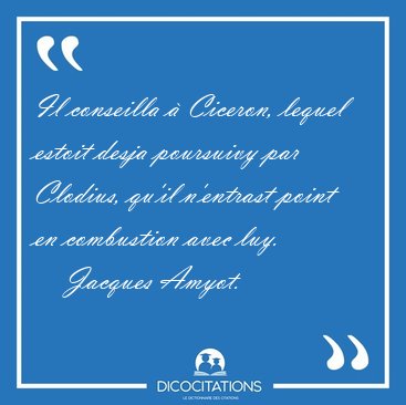 Il conseilla à Ciceron, lequel estoit desja poursuivy par Clodius, qu'il n'entrast point en combustion avec luy.