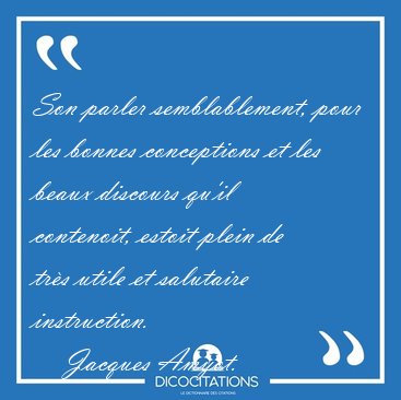 Son parler semblablement, pour les bonnes conceptions et les beaux discours qu'il contenoit, estoit plein de très utile et salutaire instruction.