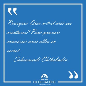![Pourquoi Dieu a-t-il créé ses créatures? Pour pouvoir converser [...] - Soheawerdi Chihabadin... Pourquoi Dieu a-t-il créé ses créatures? Pour pouvoir converser [...] - Soheawerdi Chihabadin...](/imagescitations/Pourquoi_Dieu_a-t-il_cree_ses_creatures_Pour_pouvoir_converser_-_Soheawerdi_Chihabadin-3816.jpg)