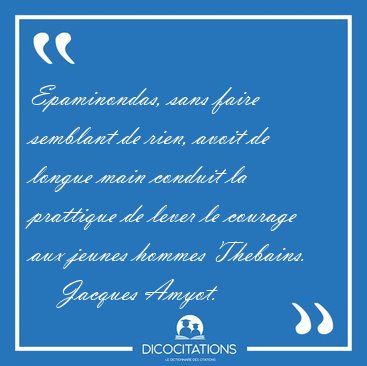 ![Epaminondas, sans faire semblant de rien, avoit de longue main [...] - Jacques Amyot... Epaminondas, sans faire semblant de rien, avoit de longue main [...] - Jacques Amyot...](/imagescitations/Epaminondas_sans_faire_semblant_de_rien_avoit_de_longue_main_-_Jacques_Amyot-38286.jpg)