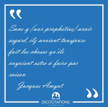 Sans y (aux propheties) avoir esgard, ilz avoient tousjours fait les choses qu'ils voyoient estre à faire par raison.