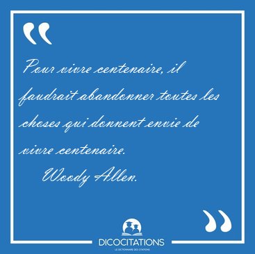 ![Pour vivre centenaire, il faudrait abandonner toutes les choses [...] - Woody Allen... Pour vivre centenaire, il faudrait abandonner toutes les choses [...] - Woody Allen...](/imagescitations/Pour_vivre_centenaire_il_faudrait_abandonner_toutes_les_choses_-_Woody_Allen-391.jpg)