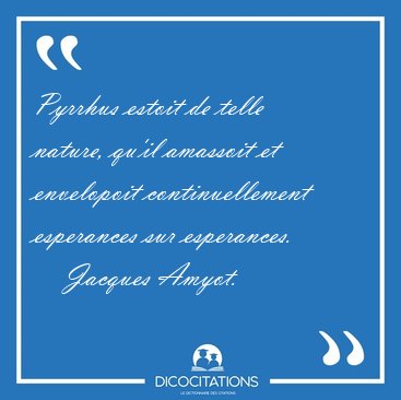 Pyrrhus estoit de telle nature, qu'il amassoit et envelopoit continuellement esperances sur esperances.