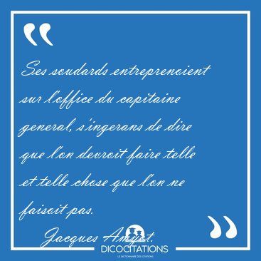 Ses soudards entreprenoient sur l'office du capitaine general, s'ingerans de dire que l'on devroit faire telle et telle chose que l'on ne faisoit pas.