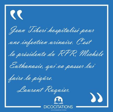 ![Jean Tiberi hospitalisé pour une infection urinaire. C'est la [...] - Laurent Ruquier... Jean Tiberi hospitalisé pour une infection urinaire. C'est la [...] - Laurent Ruquier...](/imagescitations/Jean_Tiberi_hospitalise_pour_une_infection_urinaire_C_est_la_-_Laurent_Ruquier-39656.jpg)