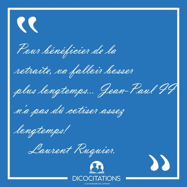 ![Pour bénéficier de la retraite, va falloir bosser plus [...] - Laurent Ruquier... Pour bénéficier de la retraite, va falloir bosser plus [...] - Laurent Ruquier...](/imagescitations/Pour_beneficier_de_la_retraite_va_falloir_bosser_plus_-_Laurent_Ruquier-39680.jpg)