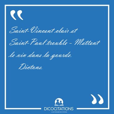 ![Saint-Vincent clair et Saint-Paul trouble - Mettent le vin dans [...] - Dictons... Saint-Vincent clair et Saint-Paul trouble - Mettent le vin dans [...] - Dictons...](/imagescitations/Saint-Vincent_clair_et_Saint-Paul_trouble_-_Mettent_le_vin_dans_-_Dictons-40331.jpg)