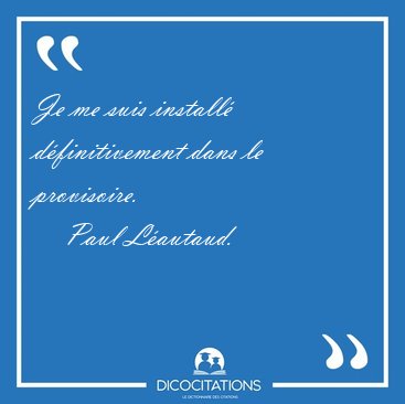 Recherche de citations : installé définitivement / définitivement provisoire / installé provisoire