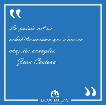 ![La poésie est un exhibitionnisme qui s'exerce chez les [...] - Jean Cocteau... La poésie est un exhibitionnisme qui s'exerce chez les [...] - Jean Cocteau...](/imagescitations/La_poesie_est_un_exhibitionnisme_qui_s_exerce_chez_les_-_Jean_Cocteau-4072.jpg)